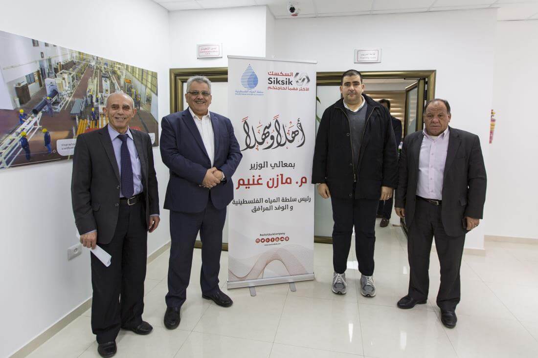 وأطلع الوزير غنيم على أكبر انجازات الشركة في السوق المحلي الفلسطيني وتتويج ذلك بإنشاء أكبر مصنع للأنابيب البلاستيكية في فلسطين، بأقطار تصل إلى 800 ملم، وخزانات السكسك البيضاء المصنعة بمواد خام عالية الجودة، وكذلك صناعة القطع والوصلات البلاستيكية.